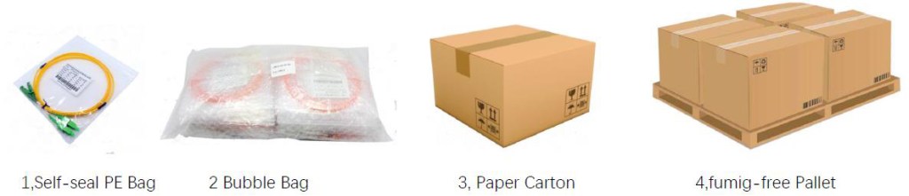 This easily taken and well-protected fiber patch cable package has been labelled and marked by OMC as default .Standard carton size : 34*22*15 cm; 44*34*24 cm ; 54*39*34 cm . Which carton to be used depends on goods Qty . Packing can be customized.
