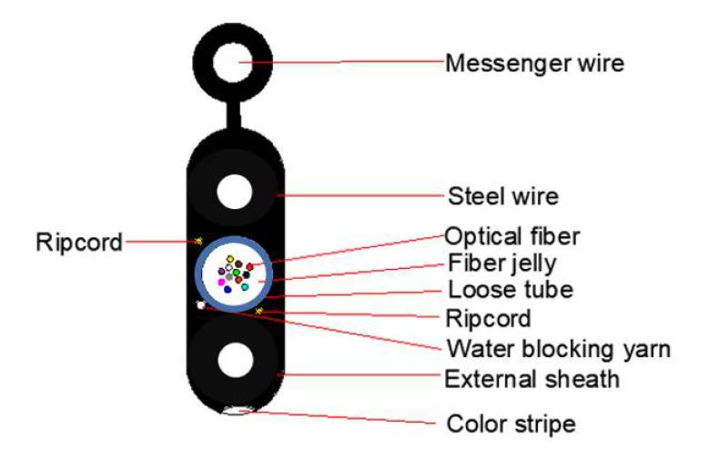 The mental strength member is made up of 1.8mm galvanize stranded wires as the supporting part are completed with a polyethylene(PE) sheath to be figure 8 structure. PE outer sheath providing crush resistance and strong resistance features. The 2pcs 0.8mm steel-wire strength member as the central strength improves the tensile strength and it is surrounded by the loose tube and water blocking system. The impact structure ensures excellent mechanical and environmental performance.