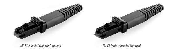 MT-RJ connectors are used with single-mode and multimode fiber-optic cables. The MT-RJ connectors are constructed with a plastic housing and provide for accurate alignment via their metal guide pins and plastic ferrules. MT-RJ connectors are rated for 1000 mating cycles. The typical insertion loss for matched MT-RJ connectors is 0.25 dB for SMF and 0.35 dB for MMF. From a design perspective, it is recommended to use a loss margin of 0.5 dB or the vendor recommendation for MT-RJ connectors.