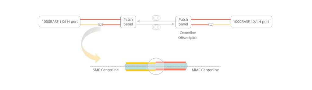 A mode conditioning patch cord is required where Gigabit 1000 Base-LX routers and switches are installed into existing multimode cable plants. The transceiver modules launch only single-mode 1300 nm signals but the existing network is built with multimode cables.