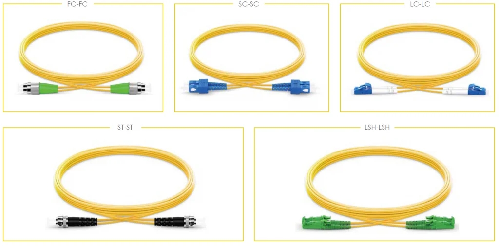 - Simplex fiber optic patch cables: Simplex fiber patch cable has one fiber and one connector on each end.
