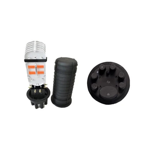 Vertical fiber optic splice closure looks like a dome, thus it is also called dome fiber optic splice closure or fiber dome closure.It usually contains one or more fiber splice trays assembled to hold/protect optical fiber splices. The common fiber counts of per splice tray are 6, 12,16 and 24 fibers. So one fiber closure’s splice capacity could cover a range of 6-672 Fibers Totally.