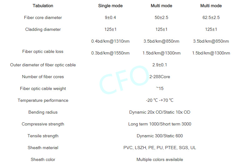 Fiber Type: G652D/G657A1/G657A2/OM1/OM2/OM3/OM4