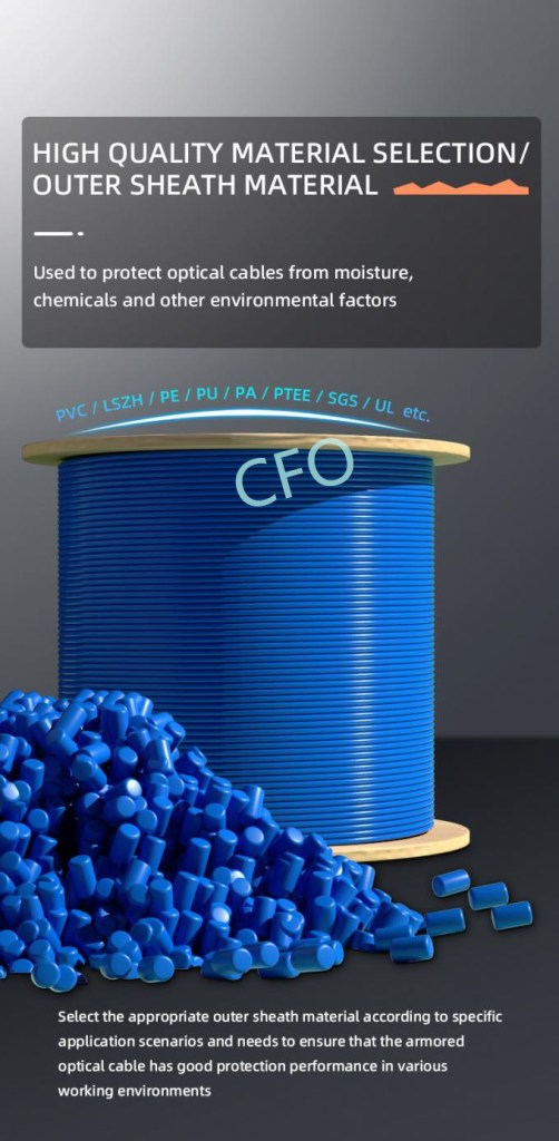 Select the appropriate outer sheath material according to specific application scenarios and needs to ensure that the armored optical cable has good protection performance in various working environments