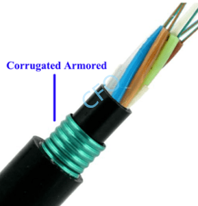Corrugated armor is a coated steel tape folded around the cable longitudinally.