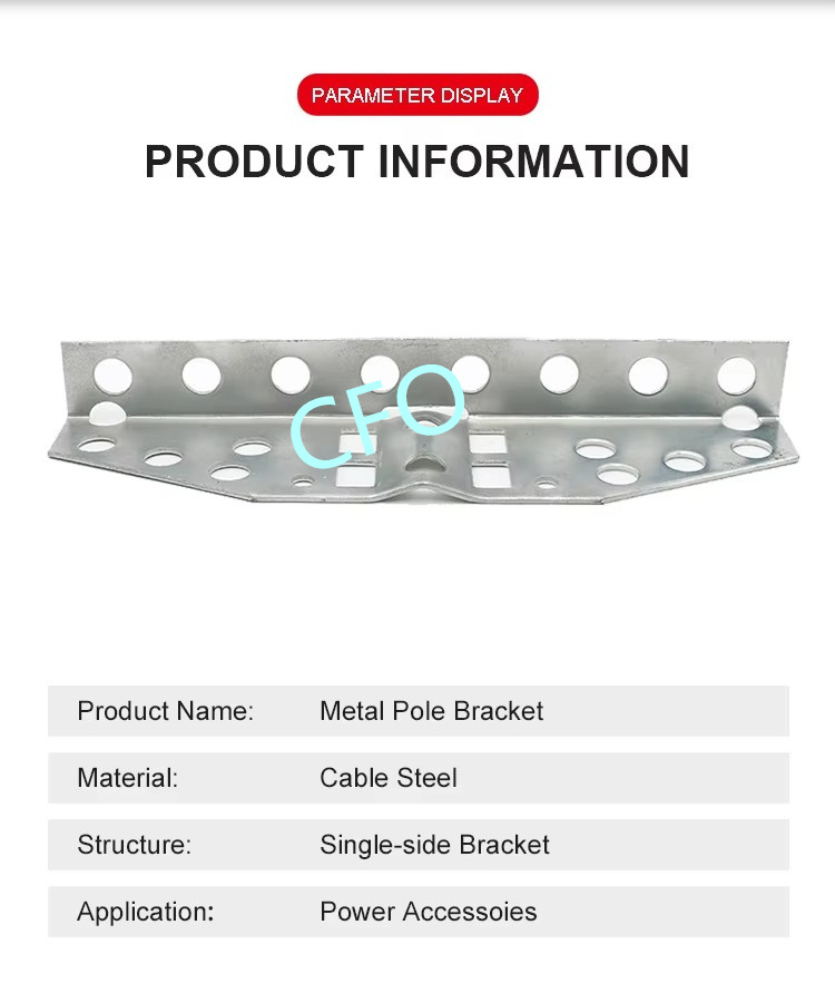 Metal pole bracket is designed to provide a widely range on pole clamps. It made of carbon still with hot dipped zinc surface treatment which can last very long period without rusty for pole accessories. It can be used with stainless steel band and buckles to fix on the pole to hold the cables.